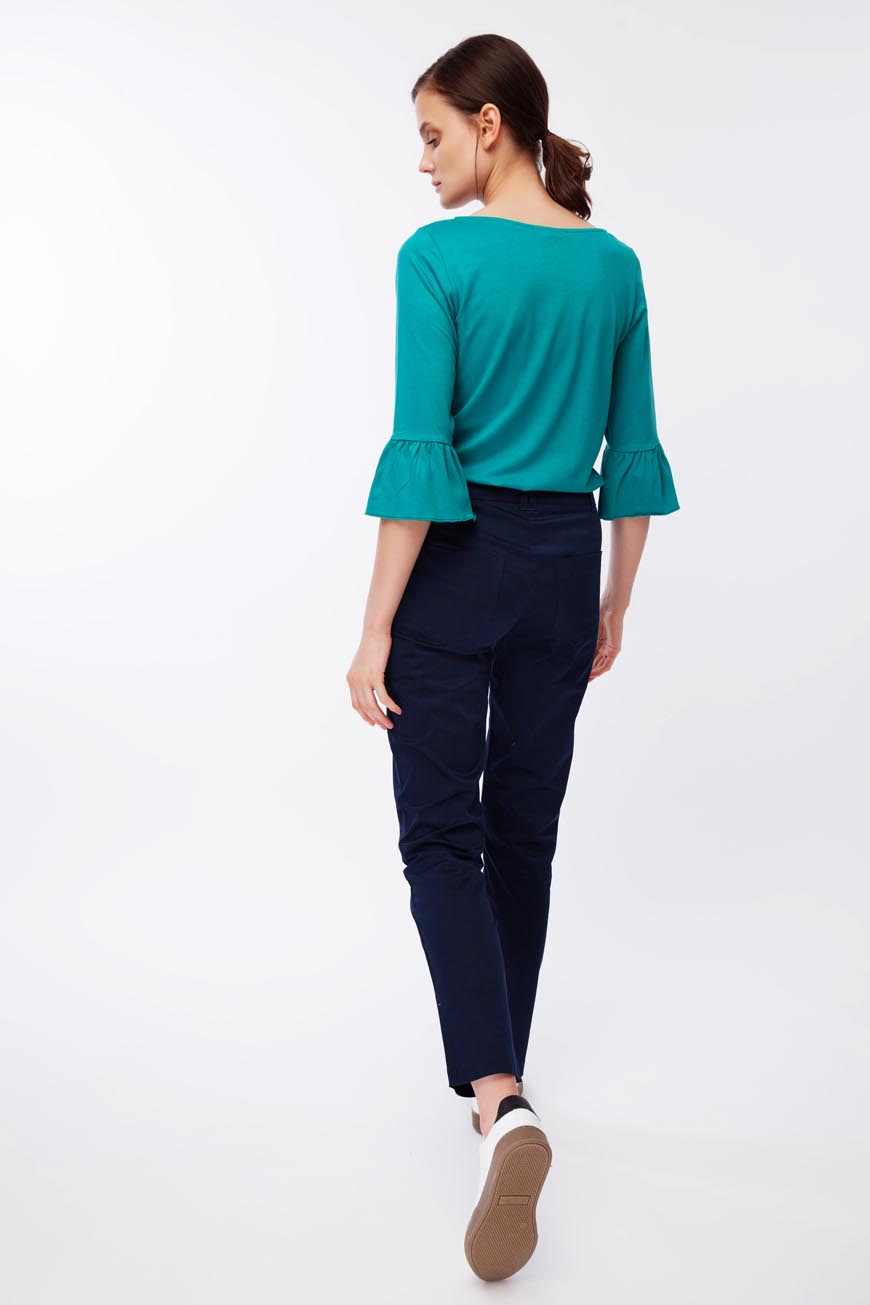 Παντελόνι μακρύ σε ύφασμα καπαρντίνα. Κουμπώνει εμπρός με φερμουάρ. Κλασική 5-τσεπη γραμμή και ψηλό καβάλο. Γραμμή ίσια.