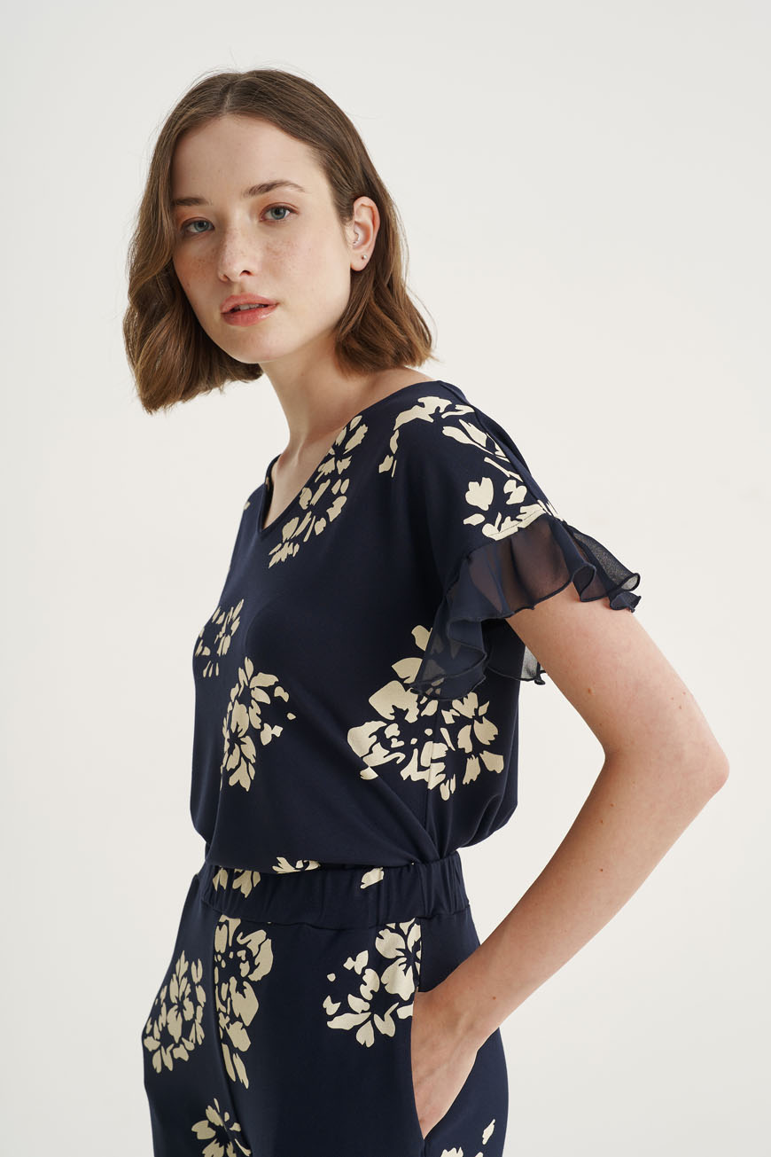 Stunning blouse with muslin details and feathers for an impressive outfit
