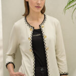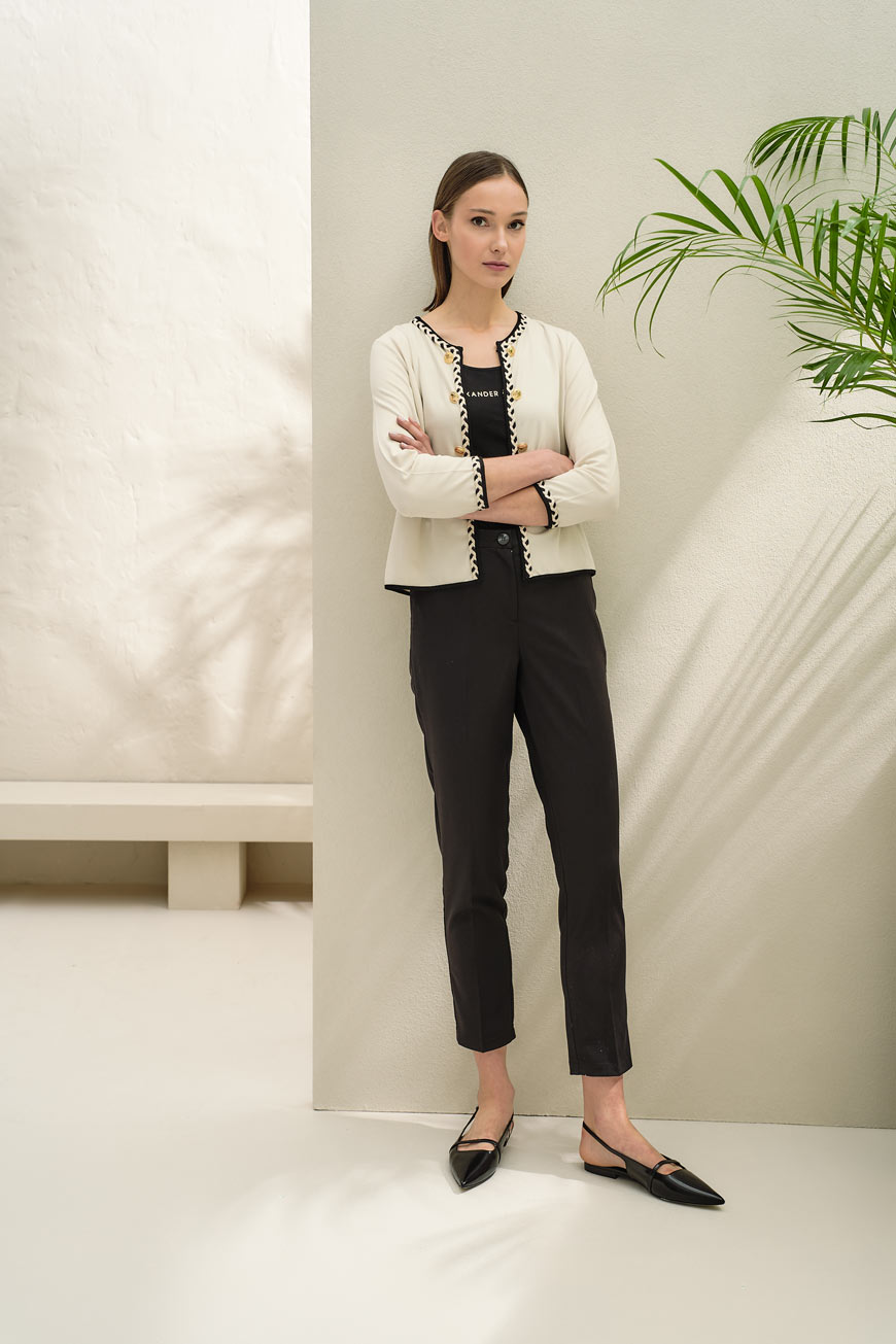 Elegant cardigan with stunning details. Wear it with the crepe trousers for a complete office look.