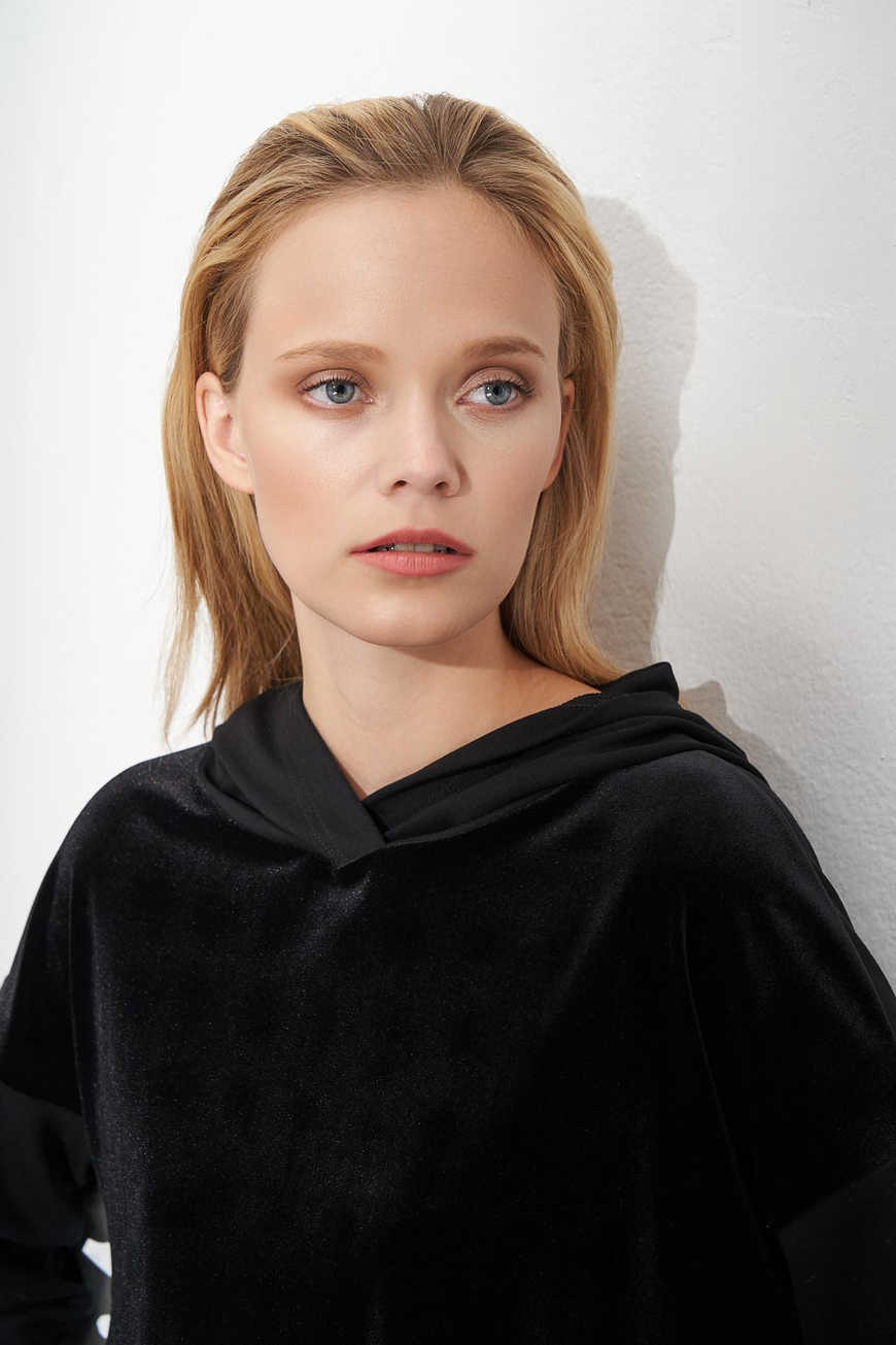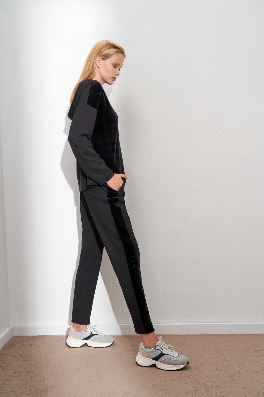 Knitted blouse made in viscose combined with low stretch velvet fabric