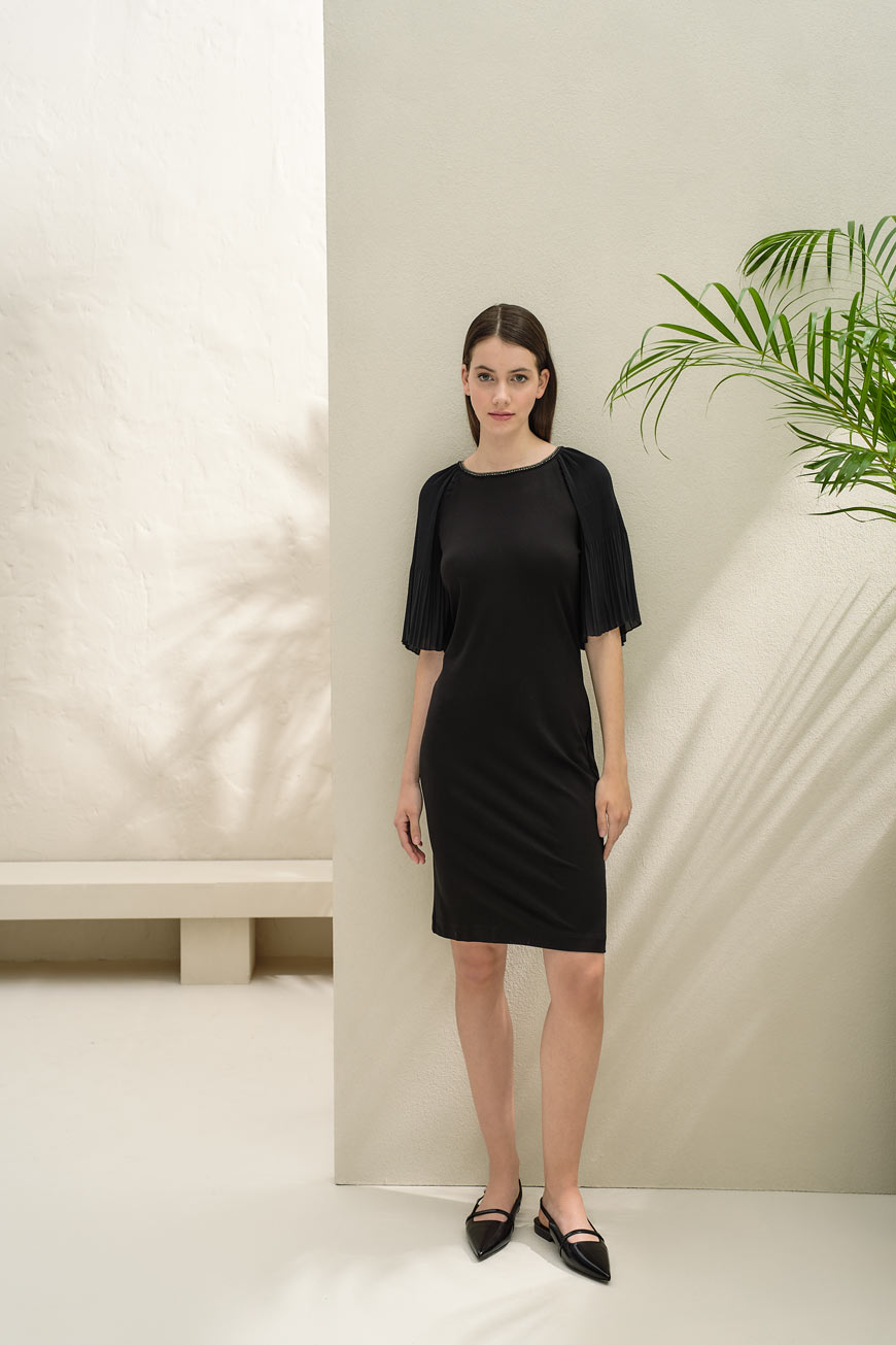 Pleated sleeve dress