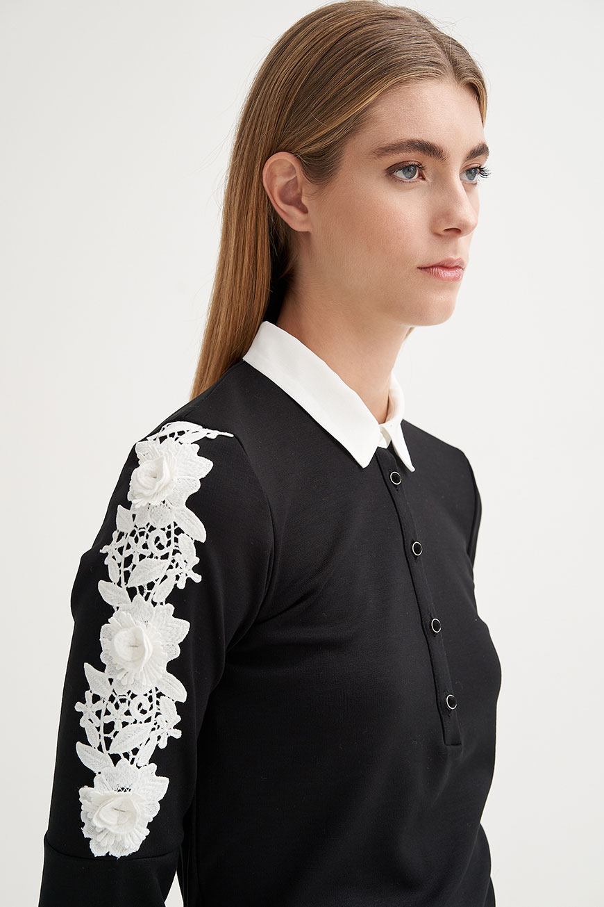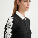 Elegant blouse with stunning detail of shirt effect. A piece that you will wear it with trousers and skirts all day long.