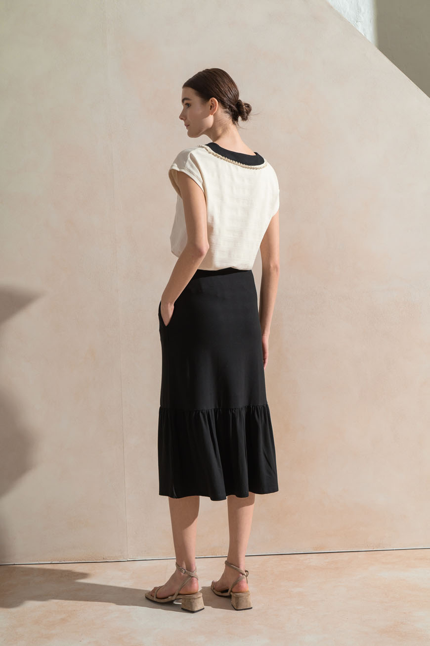 Leatherette skirt to refresh your daily outfits, but also your evening walks.Back zip fastening