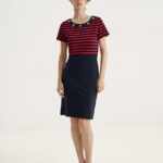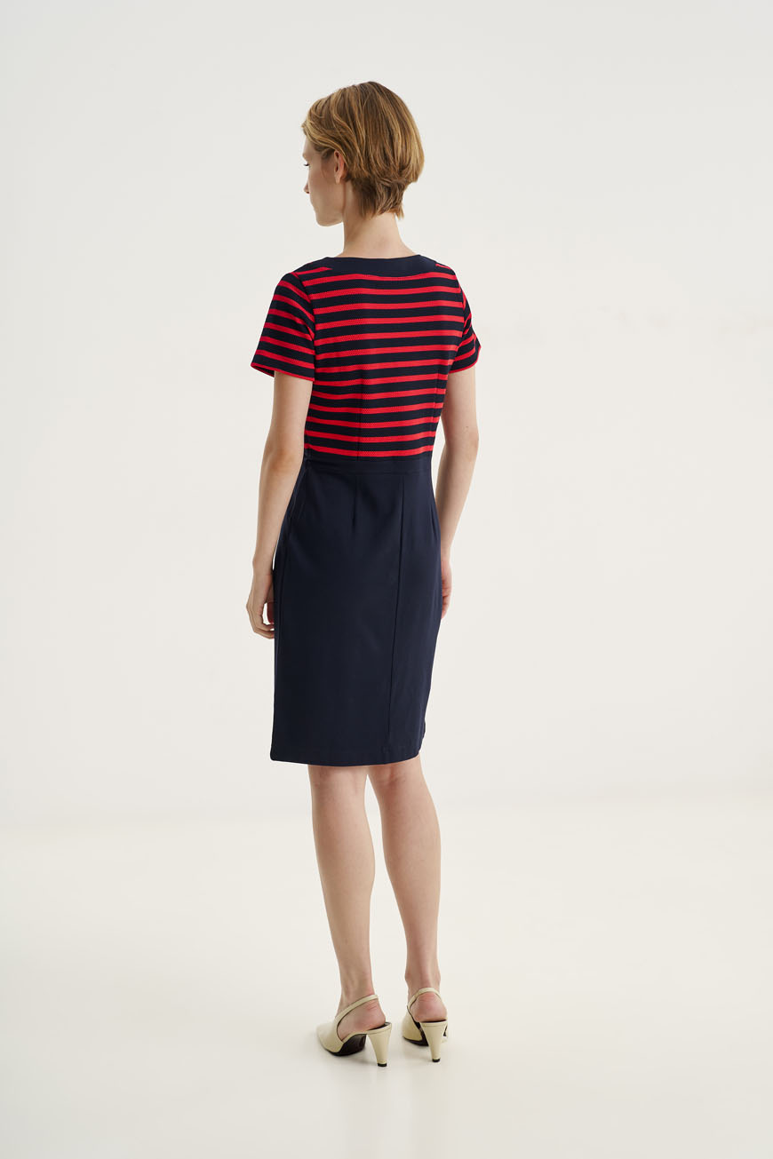 All time classic stiped skirt with elegant details with golden button suitable for office looks or for your city stroll.
